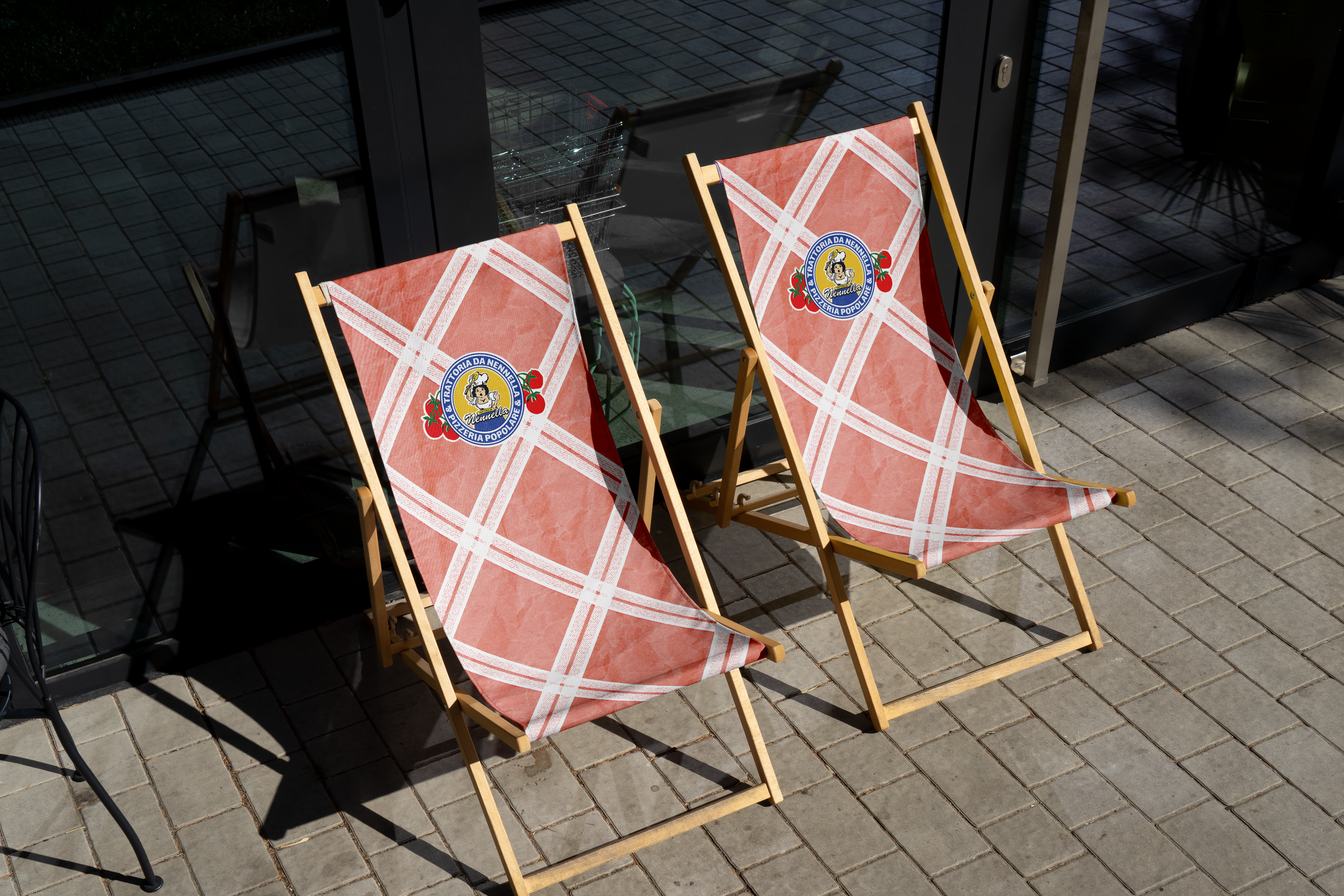 Je me suis appuyée sur les codes visuels des trattorias napolitaines de Nennella, notamment les nappes en papier à carreaux et l’esthétique imparfaite des lieux, pour construire une base graphique authentique. Cette première intention m’a ensuite amenée à explorer l’univers des emballages alimentaires italiens vintage, caractérisés par des aplats de couleurs, des décalages d’impression et des compositions populaires et généreuses.