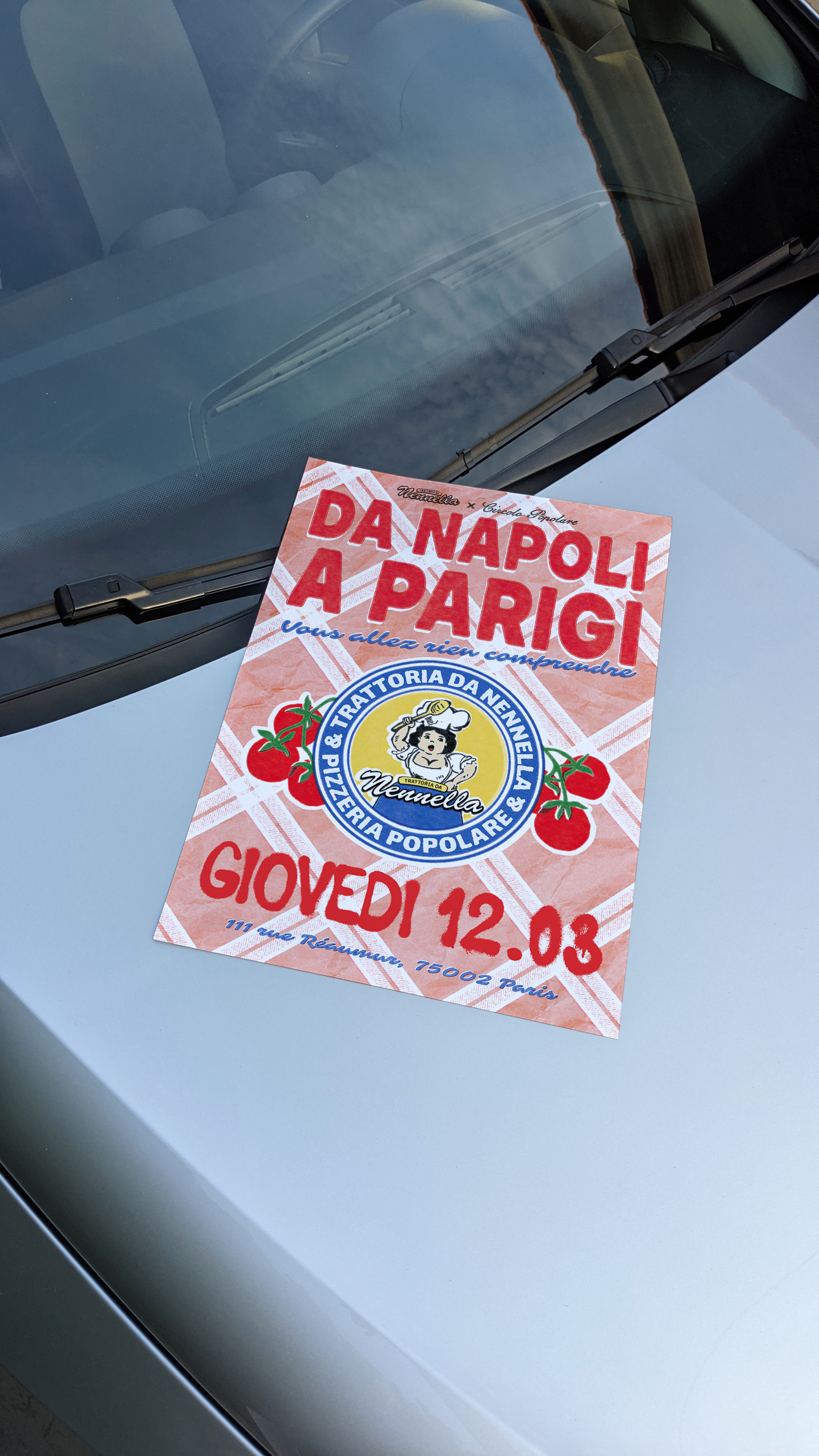Big Mamma m'a proposé de concevoir une affiche annonçant une collaboration entre Nennella et la Pizzeria Popolare. L’enjeu était de proposer une direction artistique libre, capable de traduire l’énergie napolitaine de Nennella tout en s’inscrivant dans l’univers visuel expressif et populaire de Big Mamma.